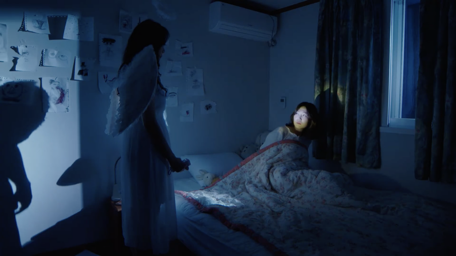 이 영화의 매력은 이런 지점들에서 발산된다. ‘보이는 것’과 영화가 주장하고 있는 것 사이의 괴리가, 그 미끄러짐이 이 진지한 가족-호러-스릴러물에 웃음을 보탠다. 그건 조악함에 대한 비웃음이 아니다. 레즈비언 수태고지 장면에서 다이소에 팔 것 같은 장식품으로 치장한 천사가 나타났을 때 웃음이 나오는 것은, 그가 어깨에 맨 날개와 머리에 쓴 후광 장식의 조악함 때문이 아니라, 이 시종일관 진지한 영화가 주장하고 있는 것들과 보여주고 있는 것 사이의 메울 수 없는 거리 때문이다. 그리고 그 거리를 이 영화는 스스로의 저돌적인 돌파로 메우고 있다. 그 돌파에 신뢰를 보낸다면, 그리고 당신이 웃었다면 이 영화(가 주장하고 있는 바)를 어느 샌가 믿게 된 것일 테다.